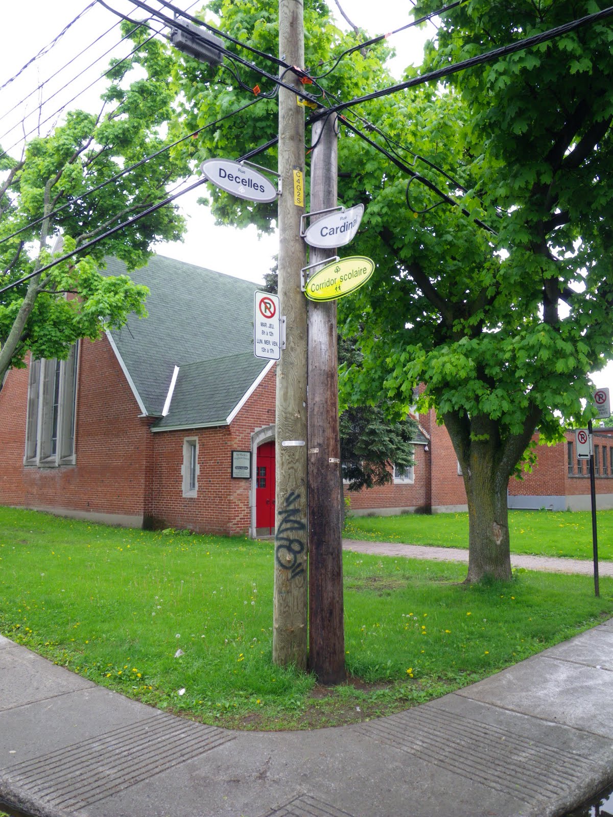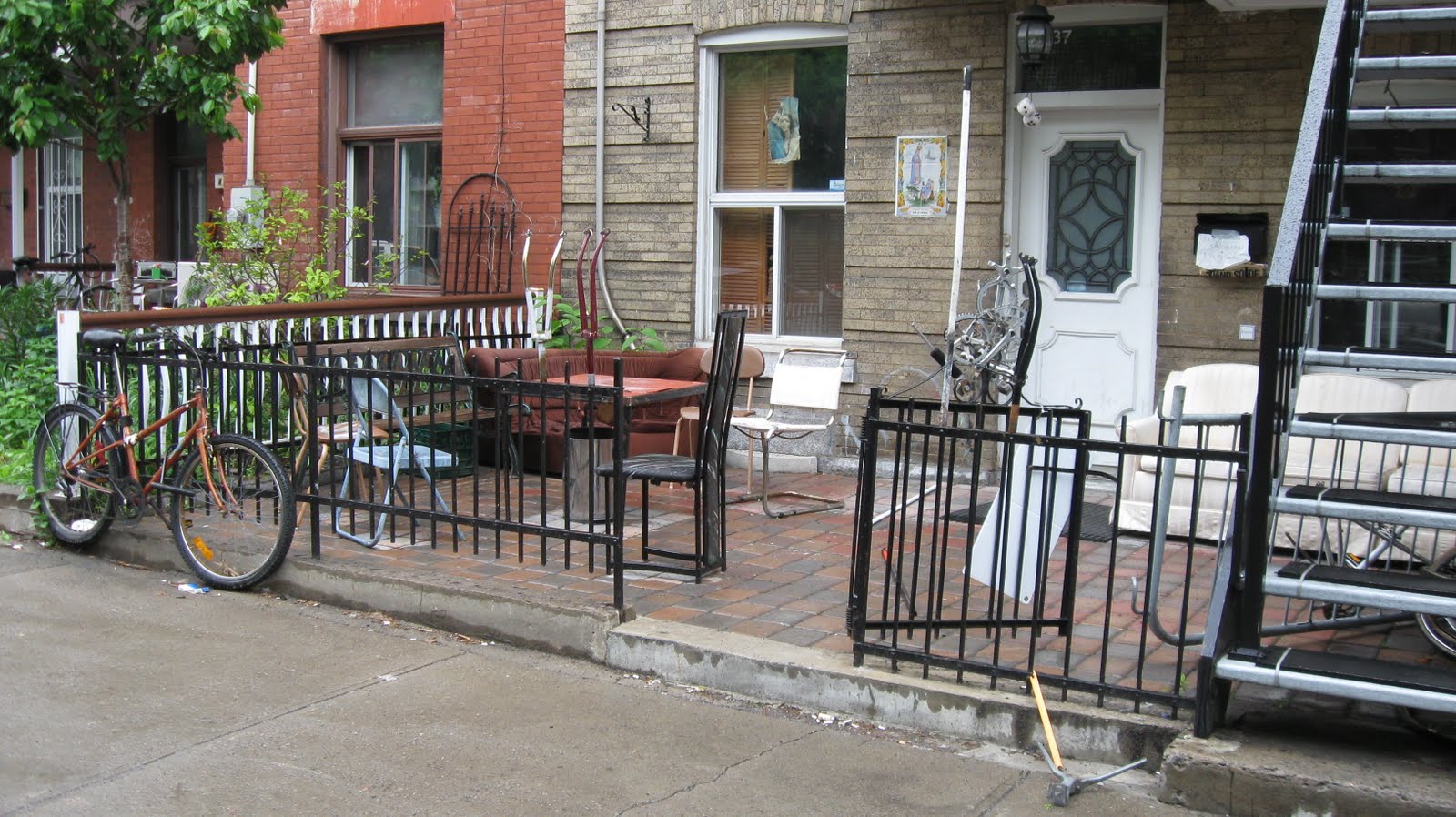 I noticed that the multi-unit houses in Montréal have a front door for each apartment, in contrast to Ottawa's tendency to have a single front door with internal separation of the apartments. It was interesting to go by row houses and see three or four doors on each one. I didn't get a photo of it, but it's not hard to find on Google Street View. Here's an example.